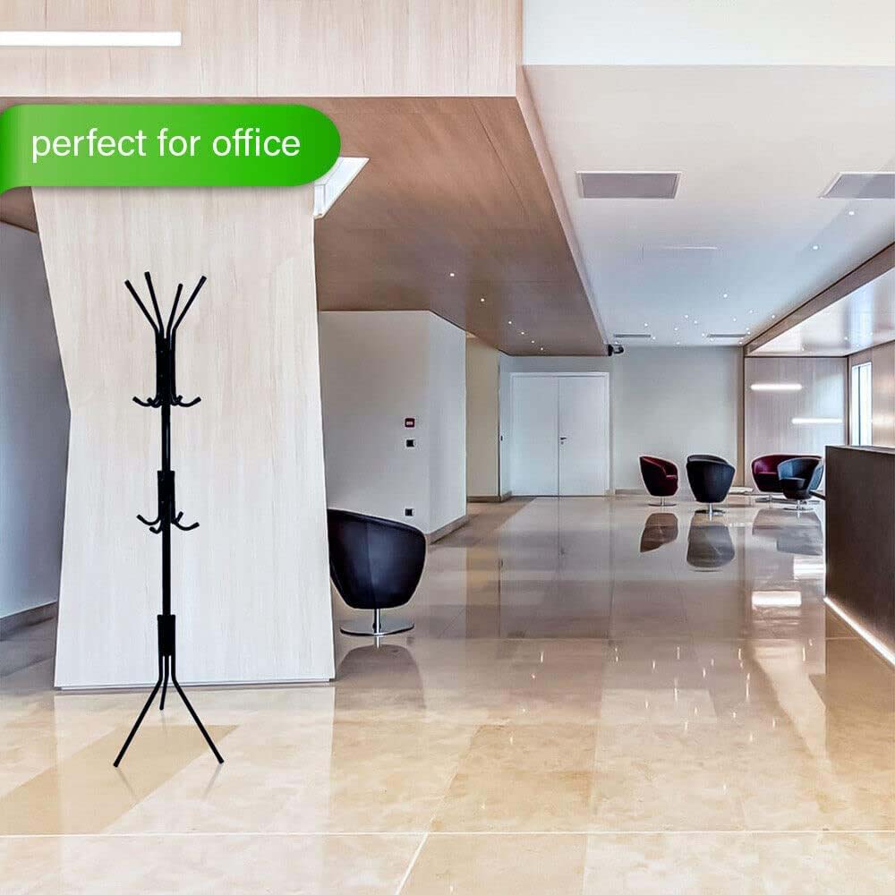 The 12-Hook Coat Rack Stand combines vintage-inspired wrought iron craftsmanship with modern functionality to keep your clothing and accessories neatly organized. This freestanding wardrobe solution features 12 sturdy metal hooks that provide ample space for hanging coats, hats, scarves, bags, and more, while the built-in dual shelves offer additional storage for shoes, folded items, or decorative accents. The classic black finish with intricate scrollwork details adds an elegant touch to any bedroom, entryway, or dressing area.