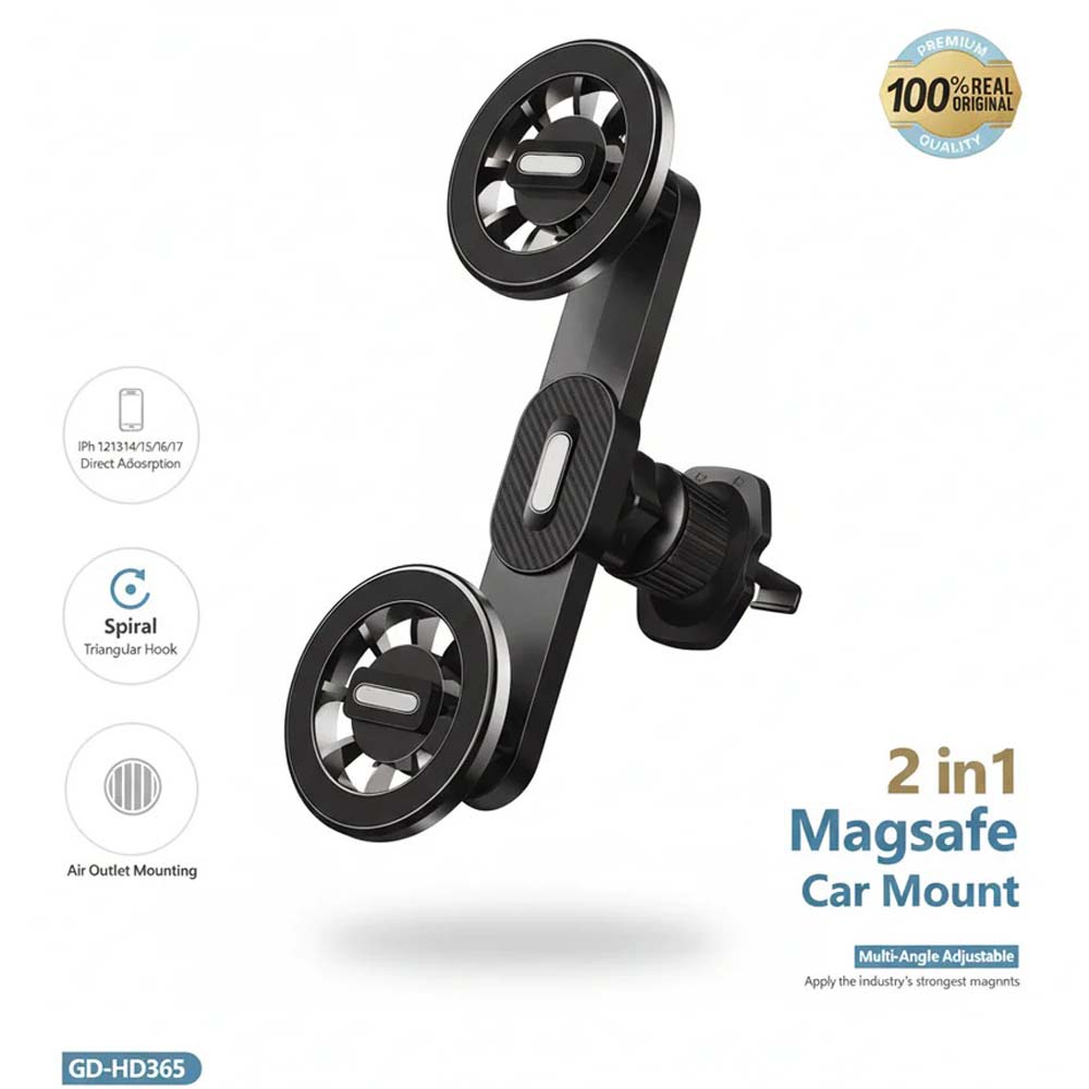 GD-HD365 2-in-1 Magnetic Car Phone Holder. Ventilation mount with strong magnetic grip for safe, hands-free driving.