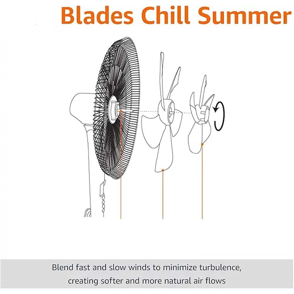 Control is at your fingertips with the full-function remote that adjusts speed, 90° oscillation, and the 8-hour programmable timer without leaving your seat. The height-adjustable stand (from 3.5 to 4.5 feet) and 30° tilt-adjustable head allow perfect airflow positioning, while the aerodynamically optimized blades move air efficiently without buffeting. The LED touch control panel with soft-blue backlighting maintains the fan’s elegant aesthetic while providing clear settings visibility day or night.